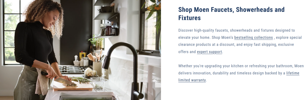 Educational content further supports decisions. Articles and videos explain how to measure sinks, choose spray patterns, or maintain Moen faucets for many years. This guidance turns the platform into a helpful resource rather than only a sales channel.